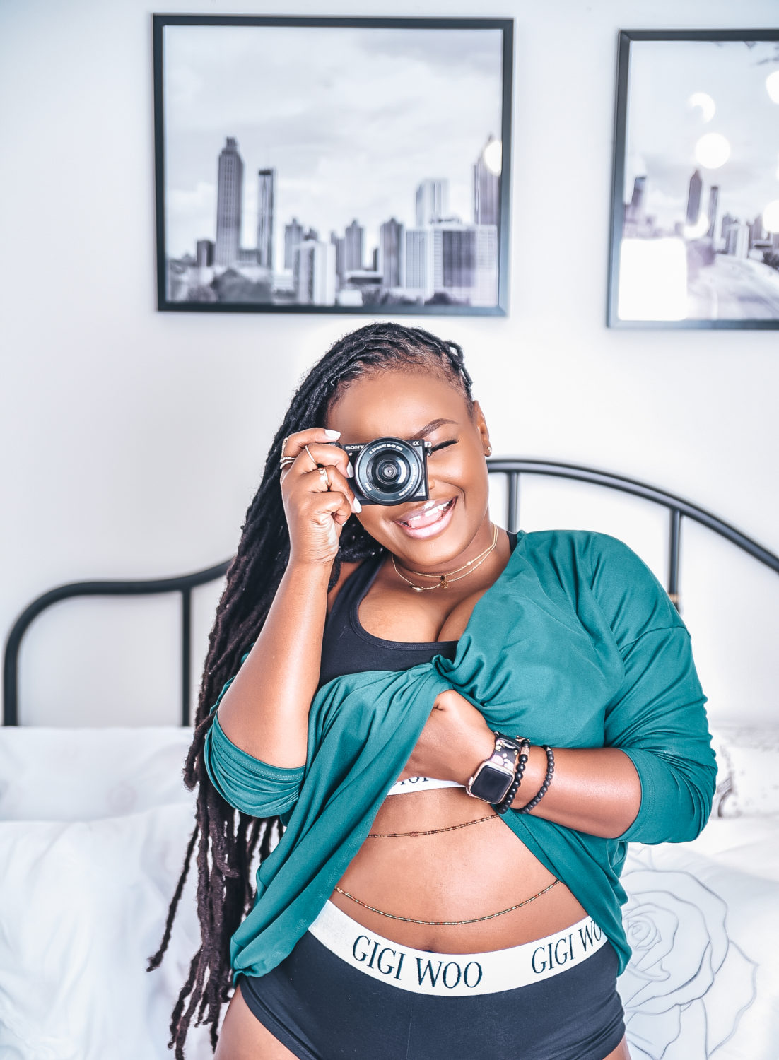 This shoot also reminded me of the true meaning of self-love. Self-love is not about loving yourself when you are at your smallest, or your best, self-love is about loving yourself, your body at every stage, inside out. Yes, it’s very important to eat healthy, exercise, and look good but NONEEEEE of that should have anything to do about how you feel about yourself, your body when you take off your clothes.